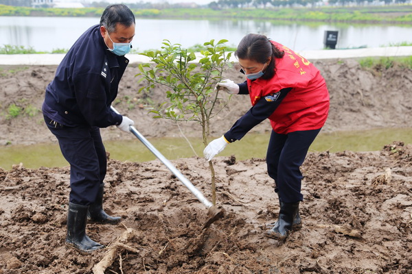 在大莲湖村三组沟渠边的荒地上,民(辅)们警热情洋溢,干劲十足,充分发扬人民警察“特别能吃苦、特别能战斗”的公安精神,撸起袖子加油干,齐心协力把树栽。挖坑、扶苗、培土、踩实、浇水,每道工序有条不紊,各个环节配合默契。“党旗在哪,党员就在哪!”整个植树现场热火朝天,一片繁忙景象。经过半天的辛勤劳动,400余棵酸柑果树苗深植于沃土之中,一棵棵新栽的树苗沐浴着和煦春风傲然挺立,为扶贫基地增添了一抹新绿,带来了一片生机。