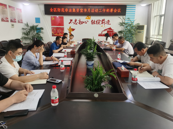 随后,区处非领导小组各成员单位发言表态,积极贯彻落实此次安排部署,不推诿,严落实。按照区处非办要求,6月重抓宣传,力争将“不贪便宜不上当,不图高息不蚀本”的理念深入我区人民群众心中,引导我区群众特别是老年群众自觉抵制非法集资。