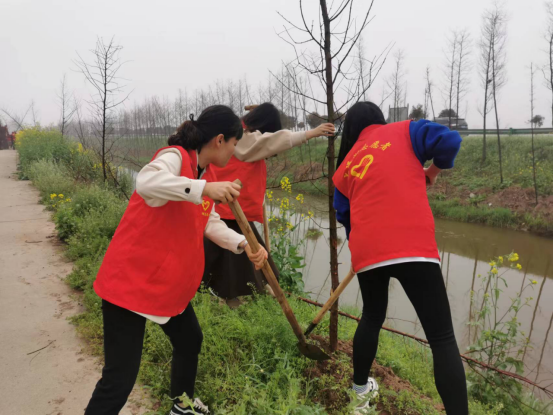 活动现场,大家三至五人为一组,挥锹培土、扶树正苗、踩实新土、浇水定根,认真栽下一棵棵树苗。经过一个上午的劳动,新栽的1100余株树苗沿着田间小路迎风而立,在春风里焕发出勃勃生机。