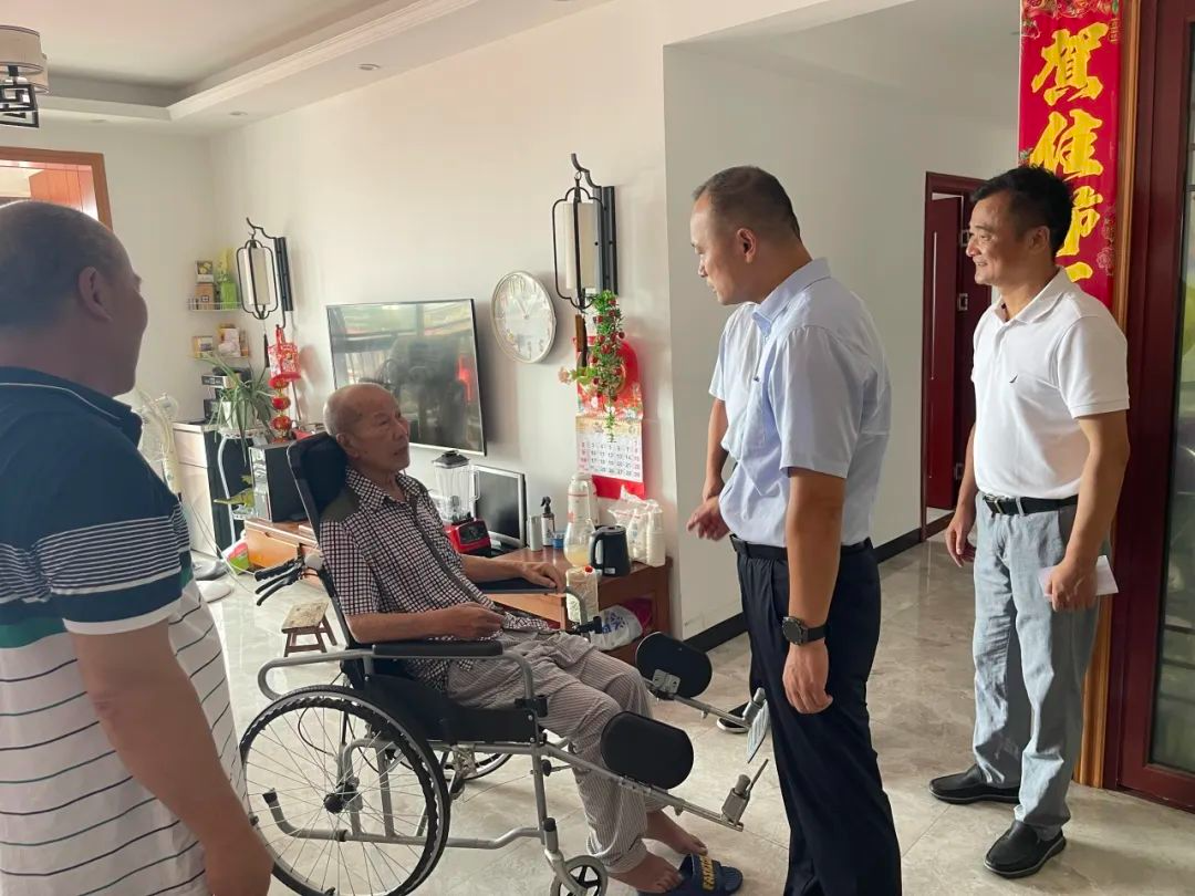 在87岁退役军人何建威家中,王新宇关切地询问他的身体状况和生活情况,仔细聆听老人讲述参军时期的峥嵘岁月,对其年轻时献身国防、保家卫国作出的贡献致以崇高的敬意,并向他致以节日的问候,希望他能继续坚定信念、保重身体。