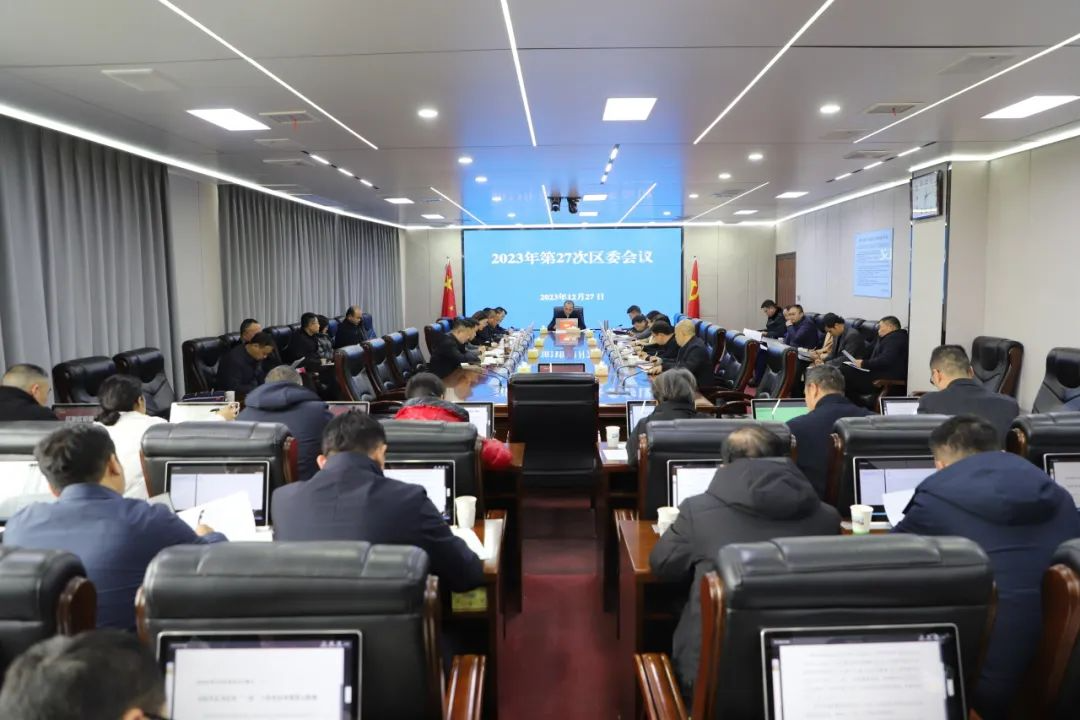 12月27日下午,区委书记王新宇主持召开2023年第27次区委会议,传达学习习近平总书记近期重要讲话精神和中央有关文件精神、重要党内法规文件。区委副书记、区长罗立峰参加。