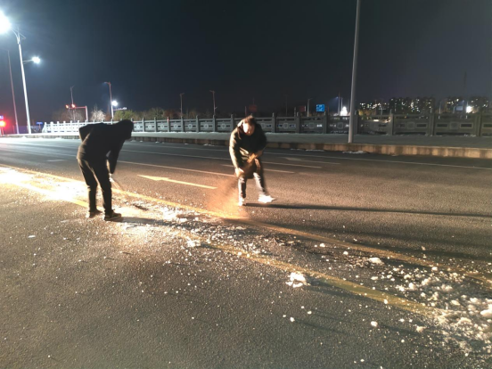 1月22日,风雪不期而至,区住房和城乡建设局迅速启动应急预案,区住建局局长郭泰山带队前往环城路桥、状元桥、三吉河坝桥、人民桥、幸福桥等重点区域迅速开展铲雪除冰作业,组织人员针对重点区域采取给洒水车安装除雪滚、人工抛洒融雪工业盐等方式排除隐患,畅通路面桥面,确保人民群众出行安全。截止1月24日,区住建局共计出动230人次,防冰冻指挥车1辆,运输车5辆,储备防冰冻工业盐20吨,雨衣雨裤警示带警示锥若干,全区住建领域低温雨雪风险基本消除。