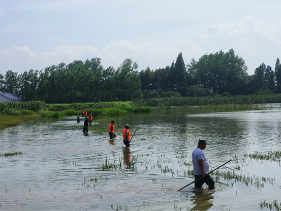 防汛抢险突击队员们以镰刀开路,不畏艰难,在堤角延伸100米处进行地毯式排查,不放过任何一个可能存在的隐患点。从浅水地带到深水区,竹竿的每一次深入和提起,让他们及时掌握了现场的水深情况。通过感受水温的变化,他们可以判断此处是否为薄弱地带,是否存在管涌等险情,确保排查无盲点、有情况早发现、有险情快处置、有管涌快反应。及时做好排查情况详实记录和上报工作, 实现险情查清、信号记清、报告说清。