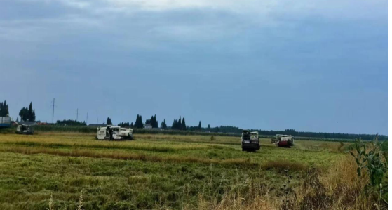 (种粮大户刘卫的稻田正在收割早稻)