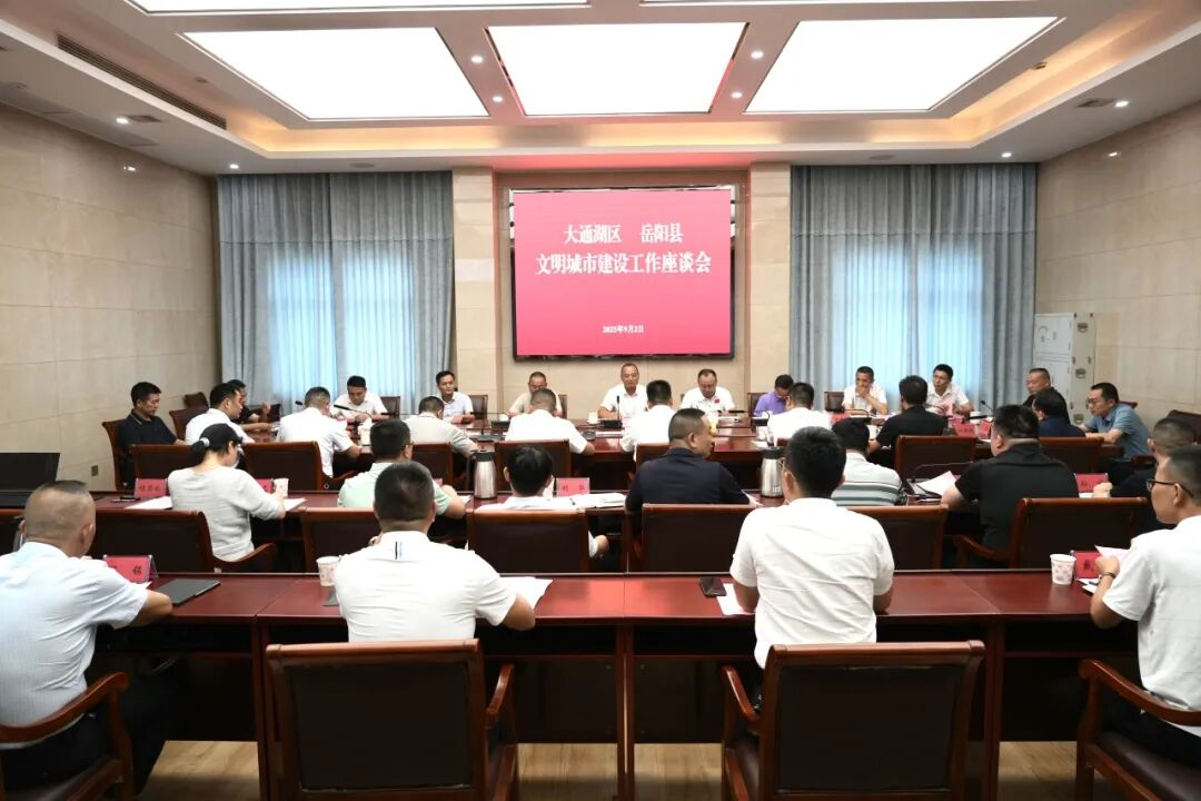 在随后召开的座谈会上,岳阳县相关负责人介绍了岳阳县创建全国文明城市的工作情况,指出文明建设要有力度;民生要有温度;管理要有深度等。双方就城市文明建设工作展开深入交流。