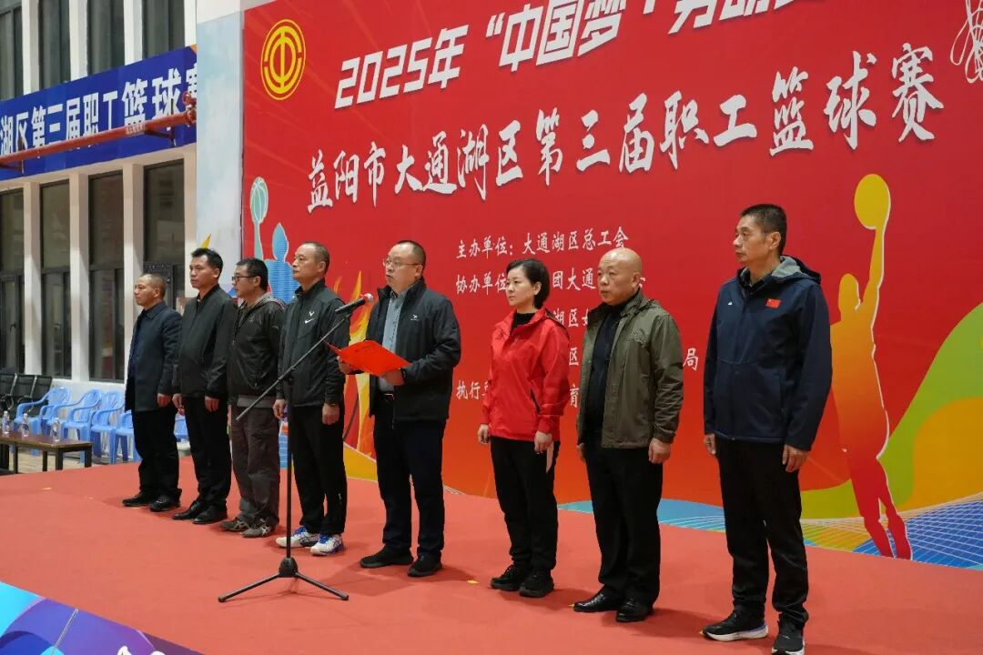 开幕式在暖场节目《向快乐出发》中拉开帷幕。开幕式上,区委副书记、宣传统战部部长钟曙波致辞。钟曙波表示,大通湖区高度重视职工精神文化建设,今年以来已陆续开展村厨大赛、新能源汽车拉力锦标赛、省青少年射箭锦标赛、气排球赛等一系列文化体育活动,本届篮球赛既是对前期文体活动成果的延续,也是进一步激发职工活力、凝聚奋斗力量的重要平台。区委书记王新宇宣布大通湖区第三届职工篮球赛开幕。