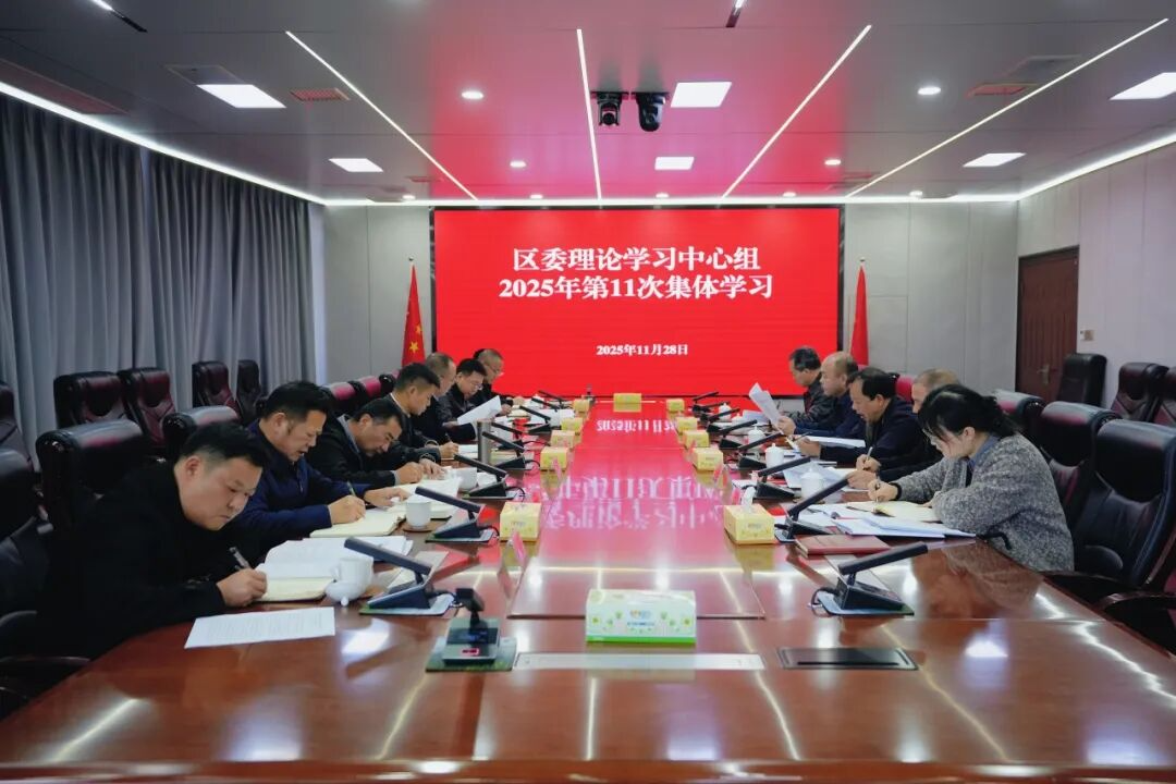 11月28日上午,区委理论学习中心组开展2025年第11次集体学习,深入学习贯彻党的二十届四中全会精神,深刻领会把握全会提出的一系列重大思想观点、重大方针政策、重大工作部署,自觉把思想和行动统一到全会精神上来,把智慧和力量凝聚到落实全会作出的战略部署上来。区委书记罗立峰主持并作总结讲话。
