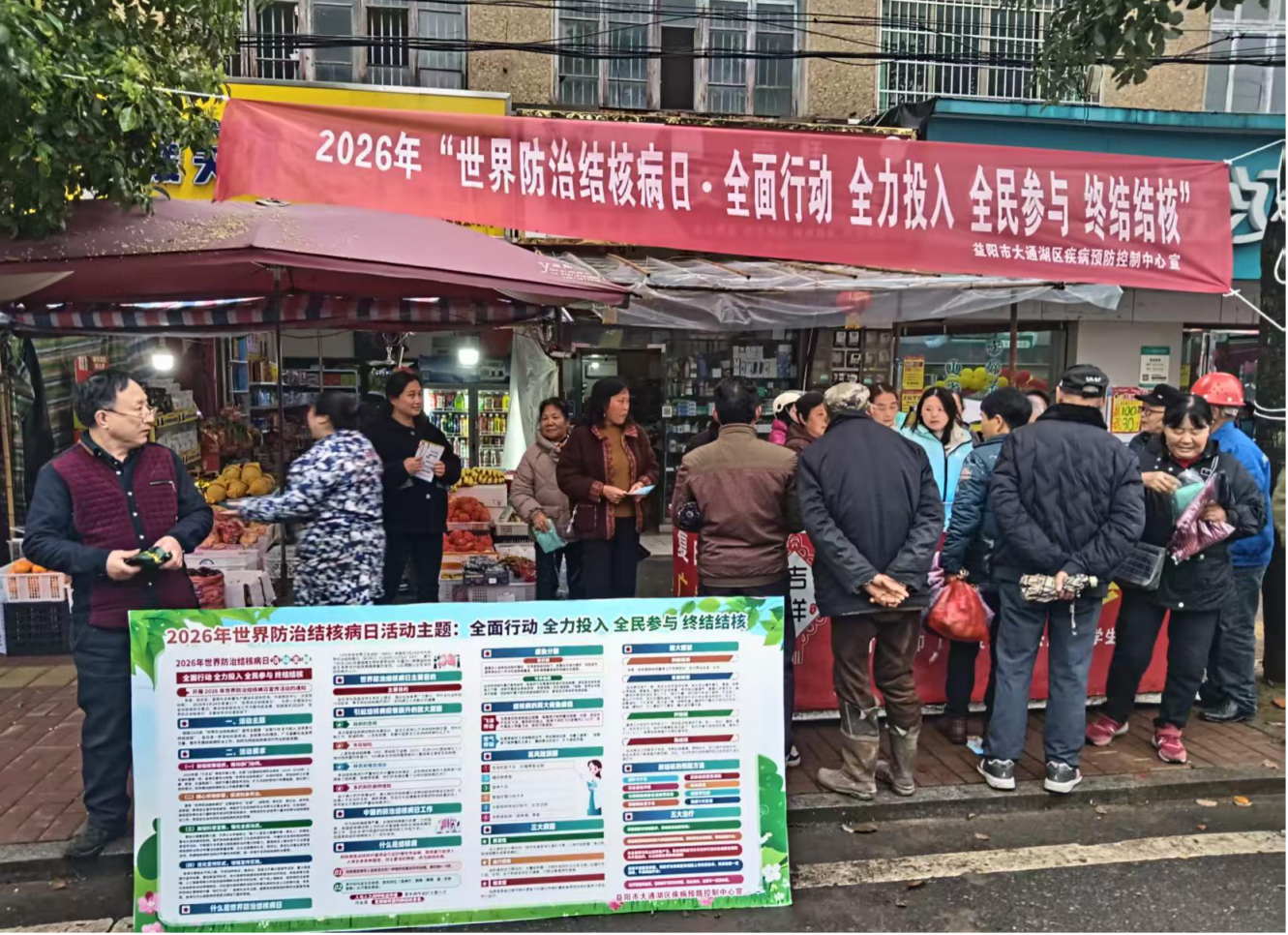 2026年3月24日是第31个“世界防治结核病日”。为进一步推动结核病防治规划实施,营造全民参与、共筑健康的良好氛围,大通湖区疾病预防控制中心围绕“全面行动 全力投入 全民参与 终结结核”主题,组织开展了形式多样、内容丰富的系列宣传活动。
