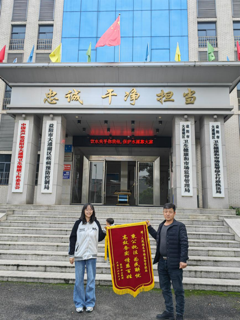 大通湖区河坝卫健市场监管所高效维权解民忧,消费者真情致谢送锦旗