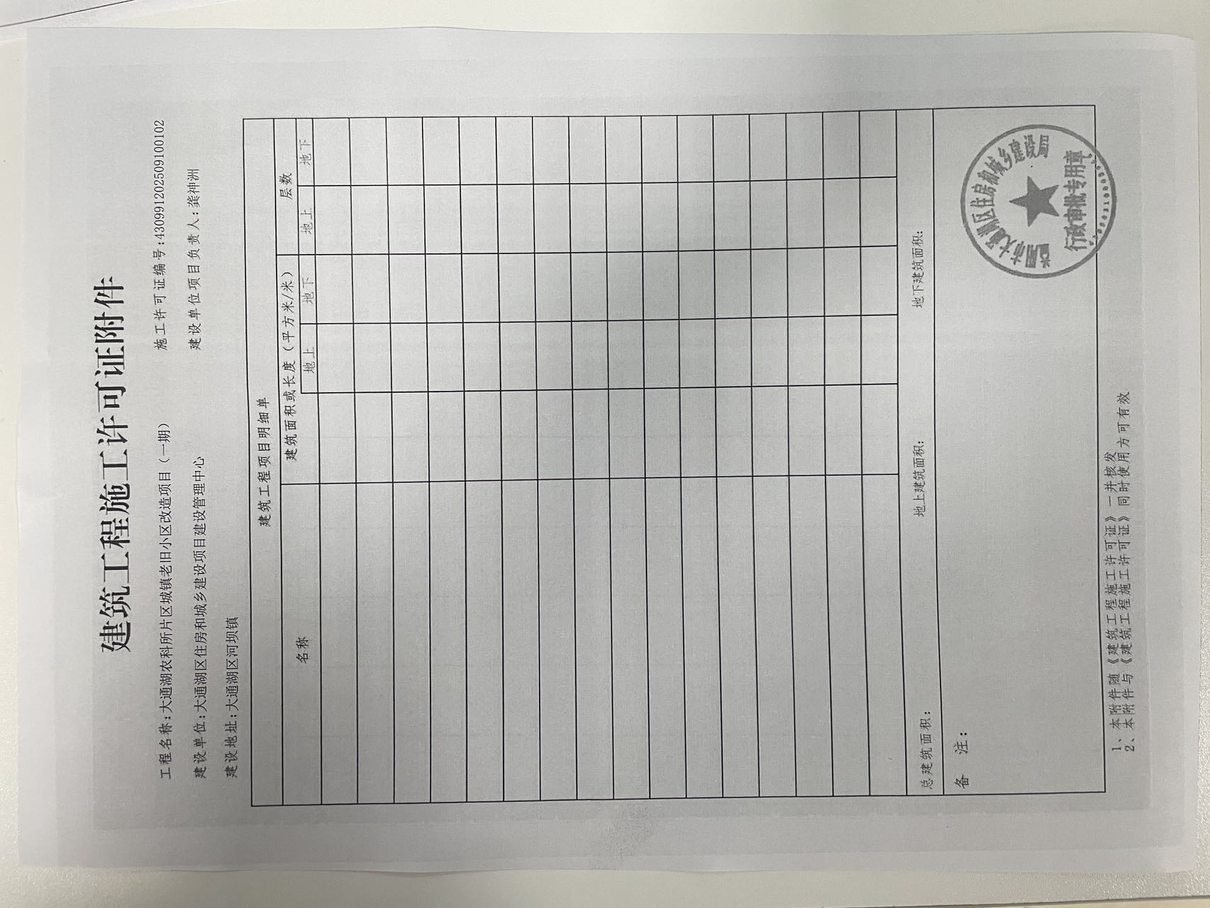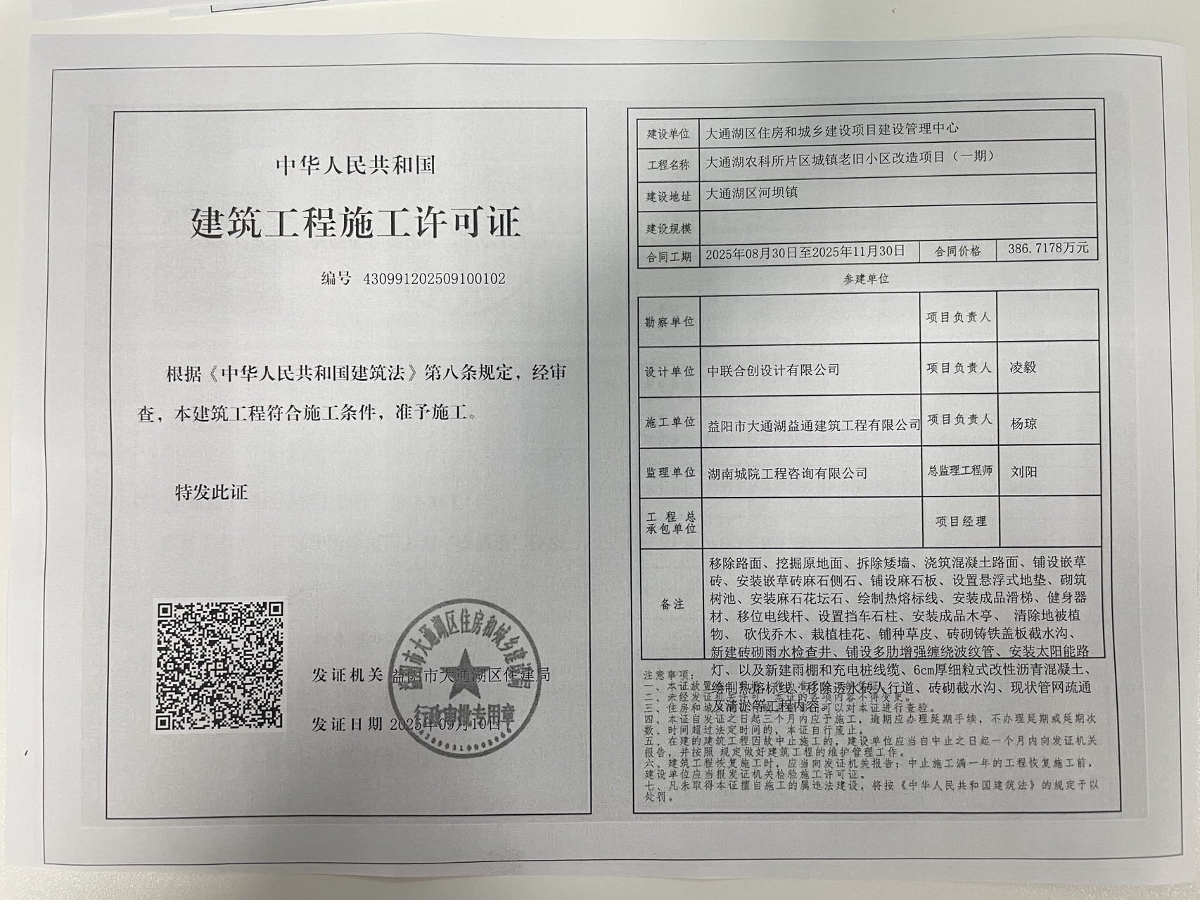 建筑工程施工许可证(大通湖农科所片区城镇老旧小区改造项目一期)