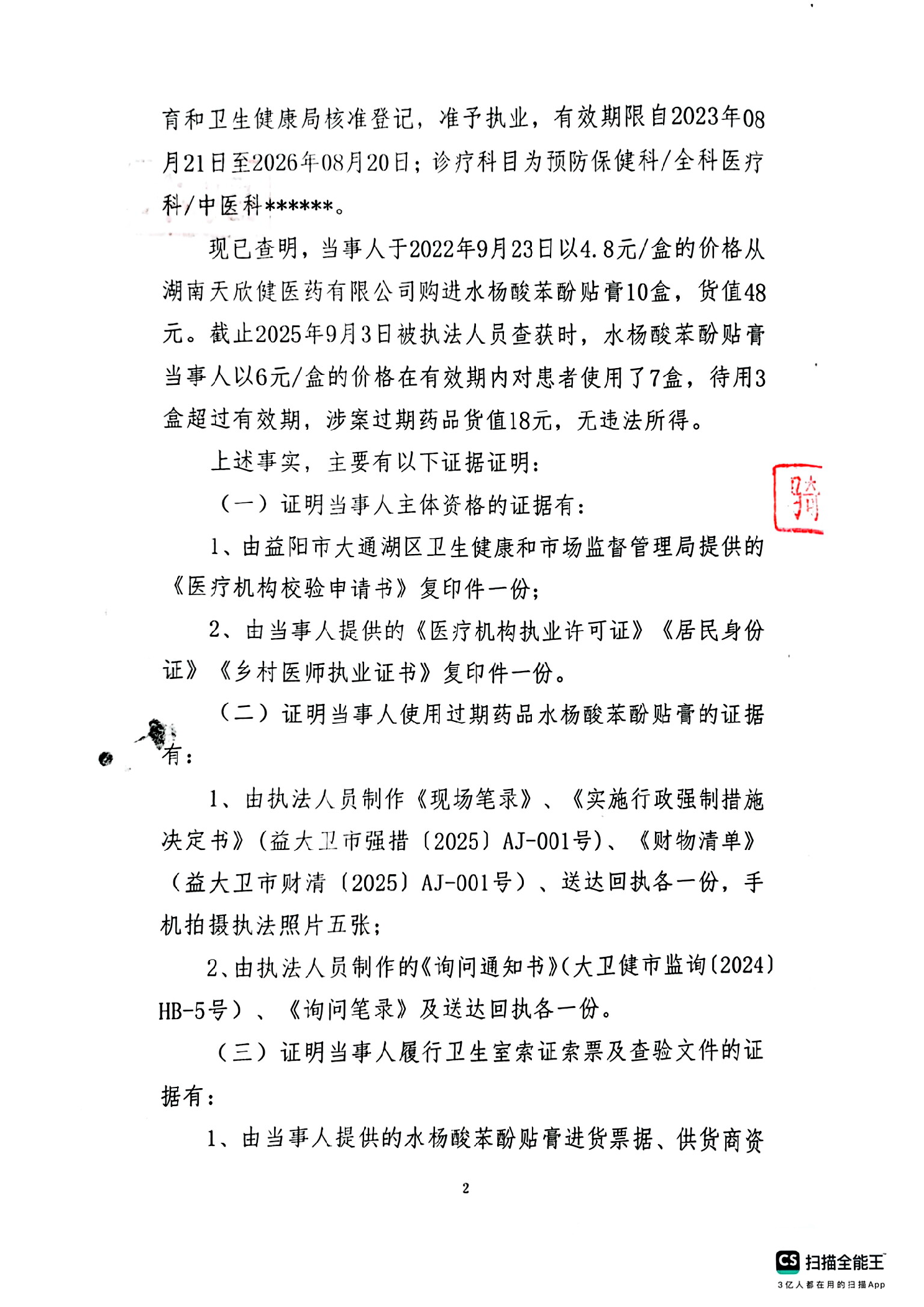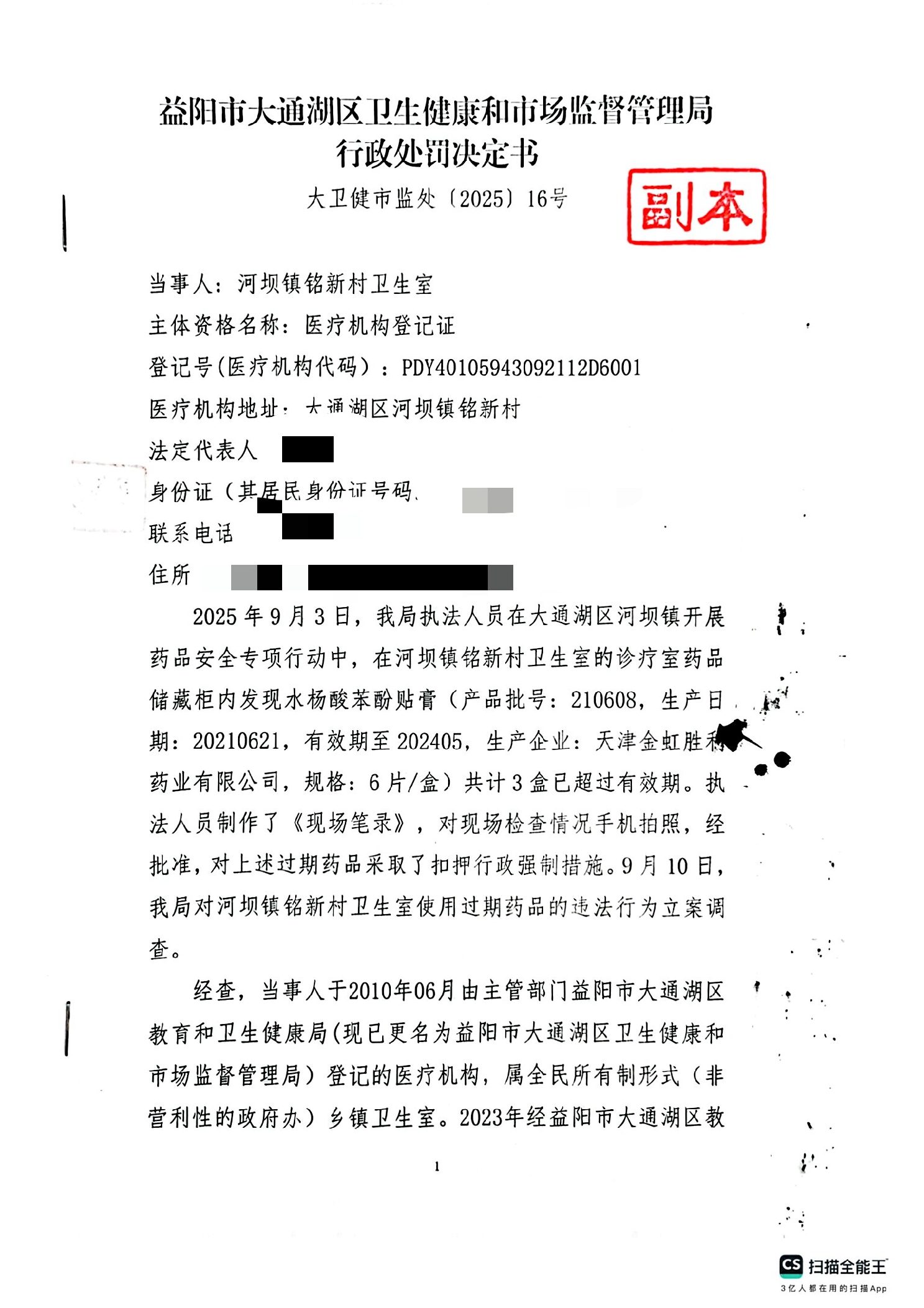 关于河坝镇铭新村卫生室的行政处罚决定书