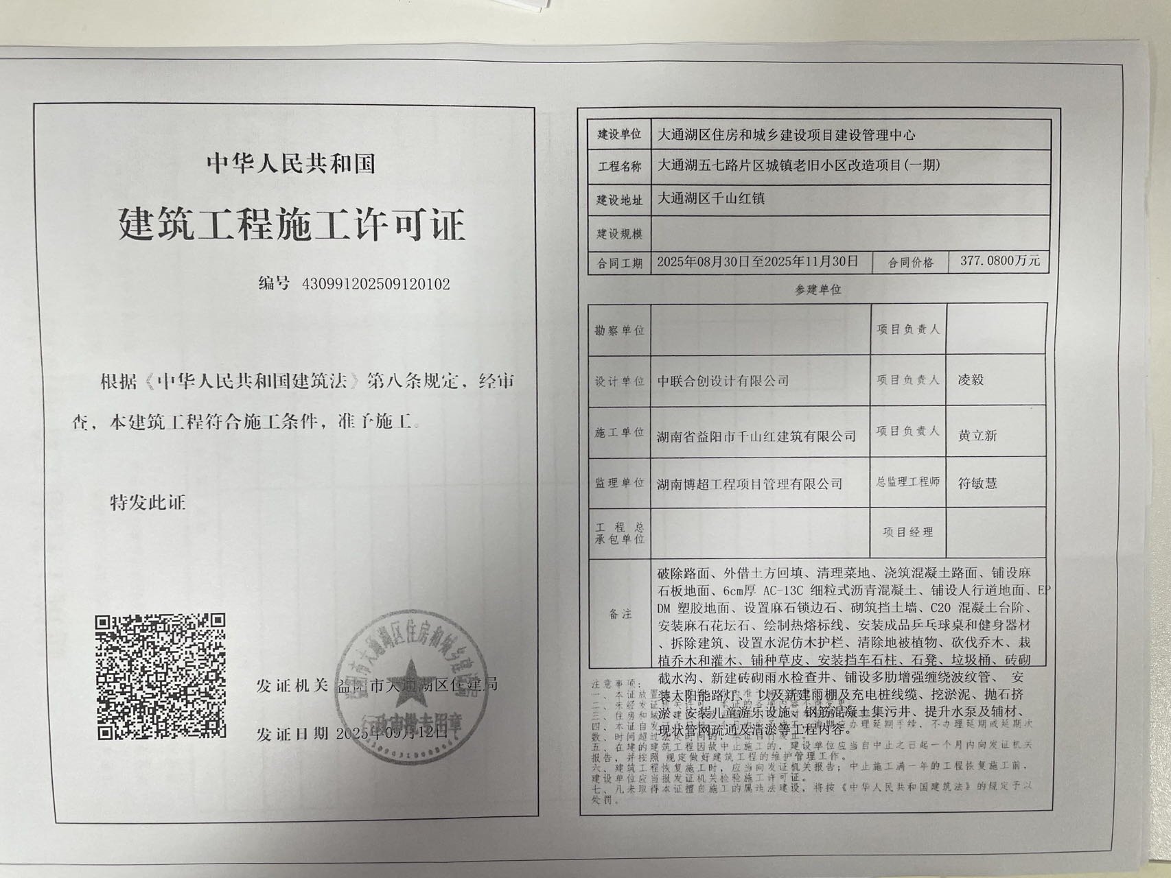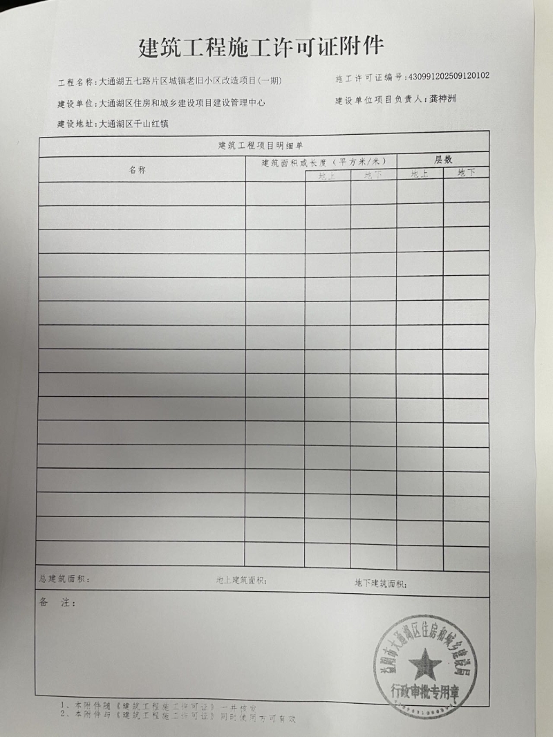 建筑工程施工许可证(大通湖五七路片区城镇老旧小区改造项目一期)