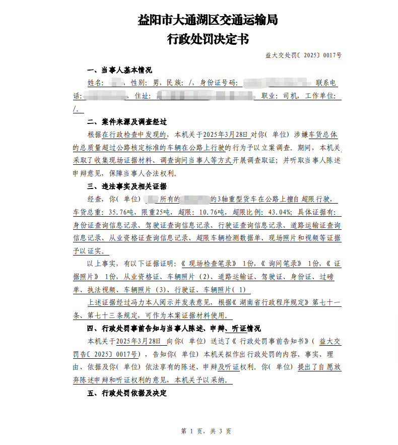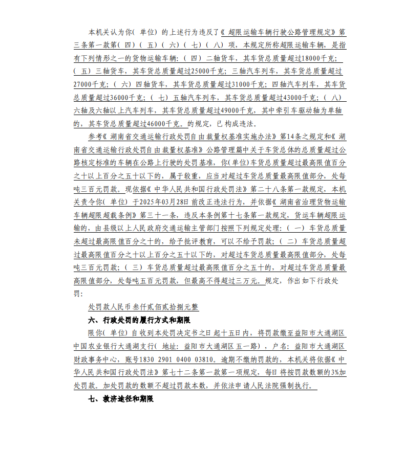 冯力车货总体的总质量超过公路核定标准的车辆在公路上行驶案