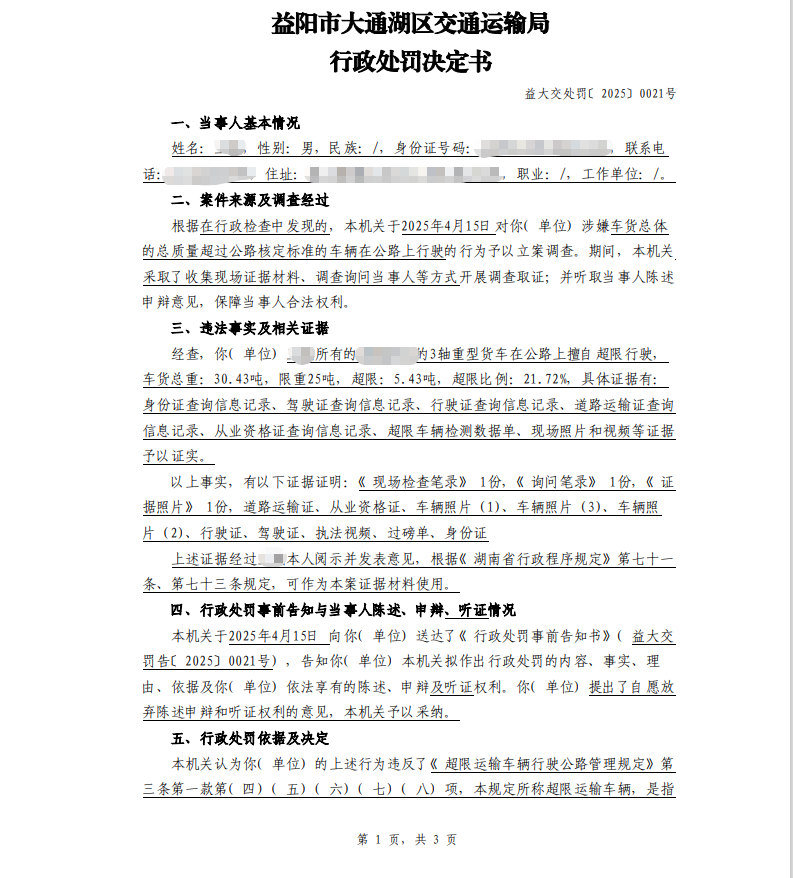 王威车货总体的总质量超过公路核定标准的车辆在公路上行驶案