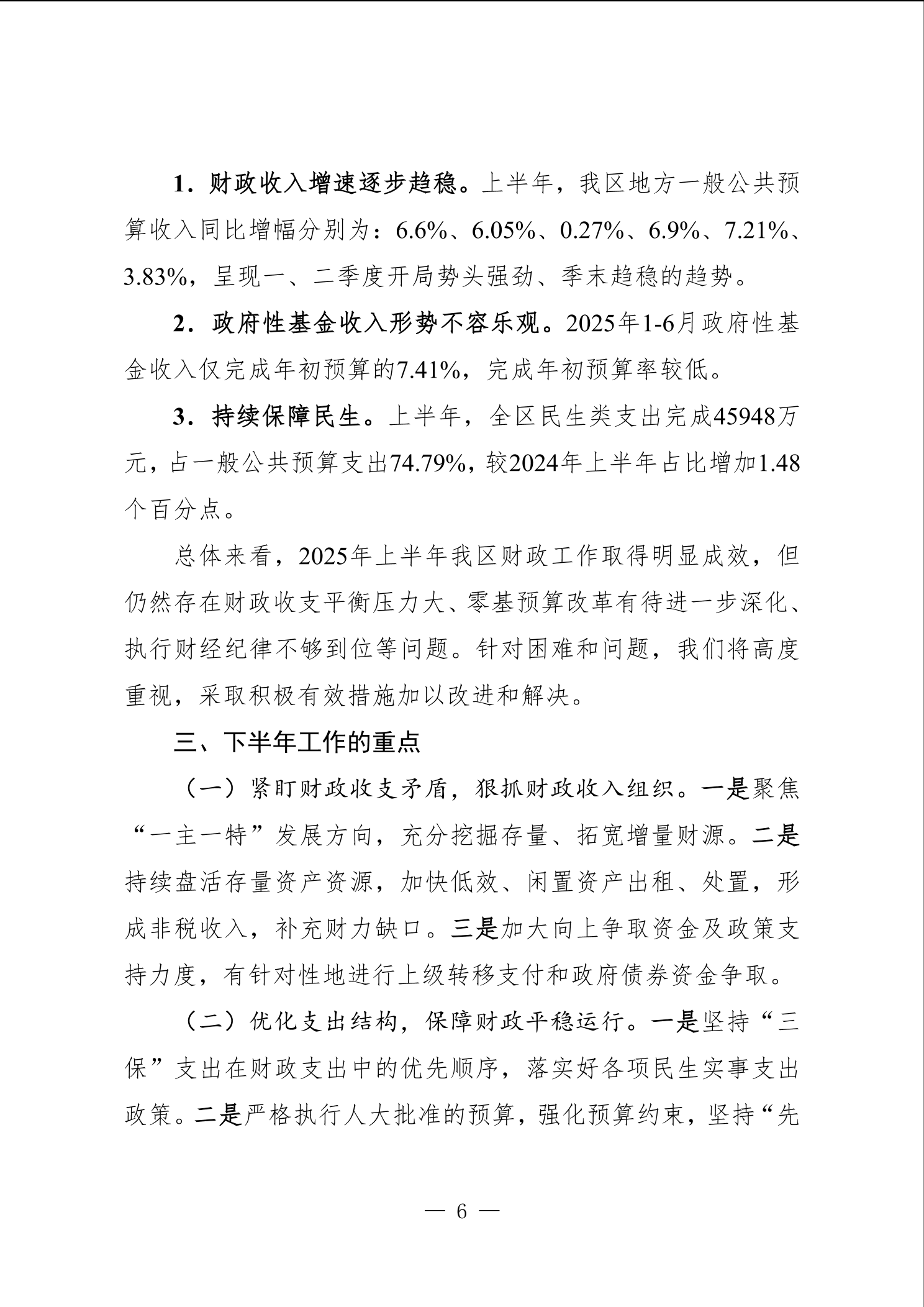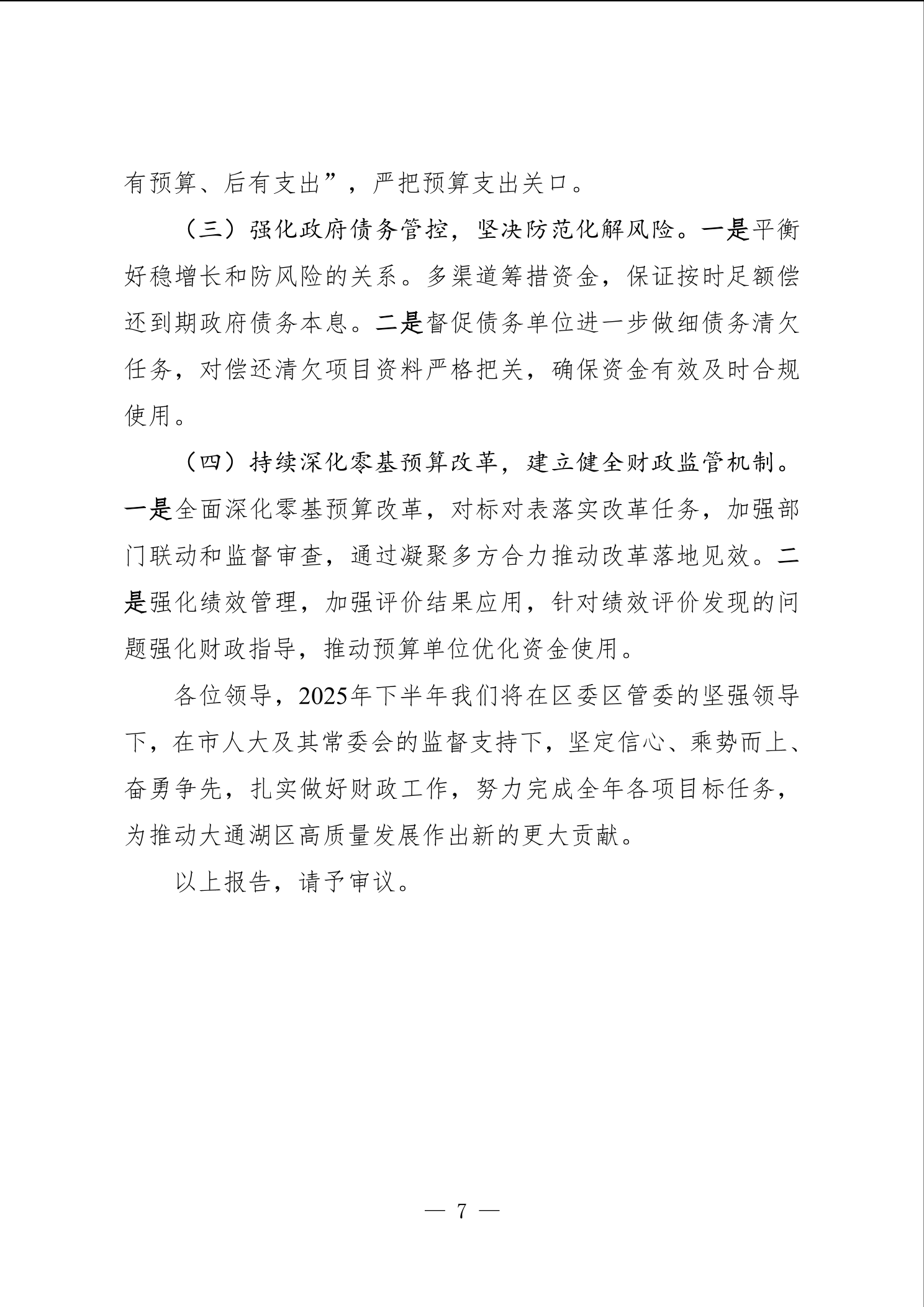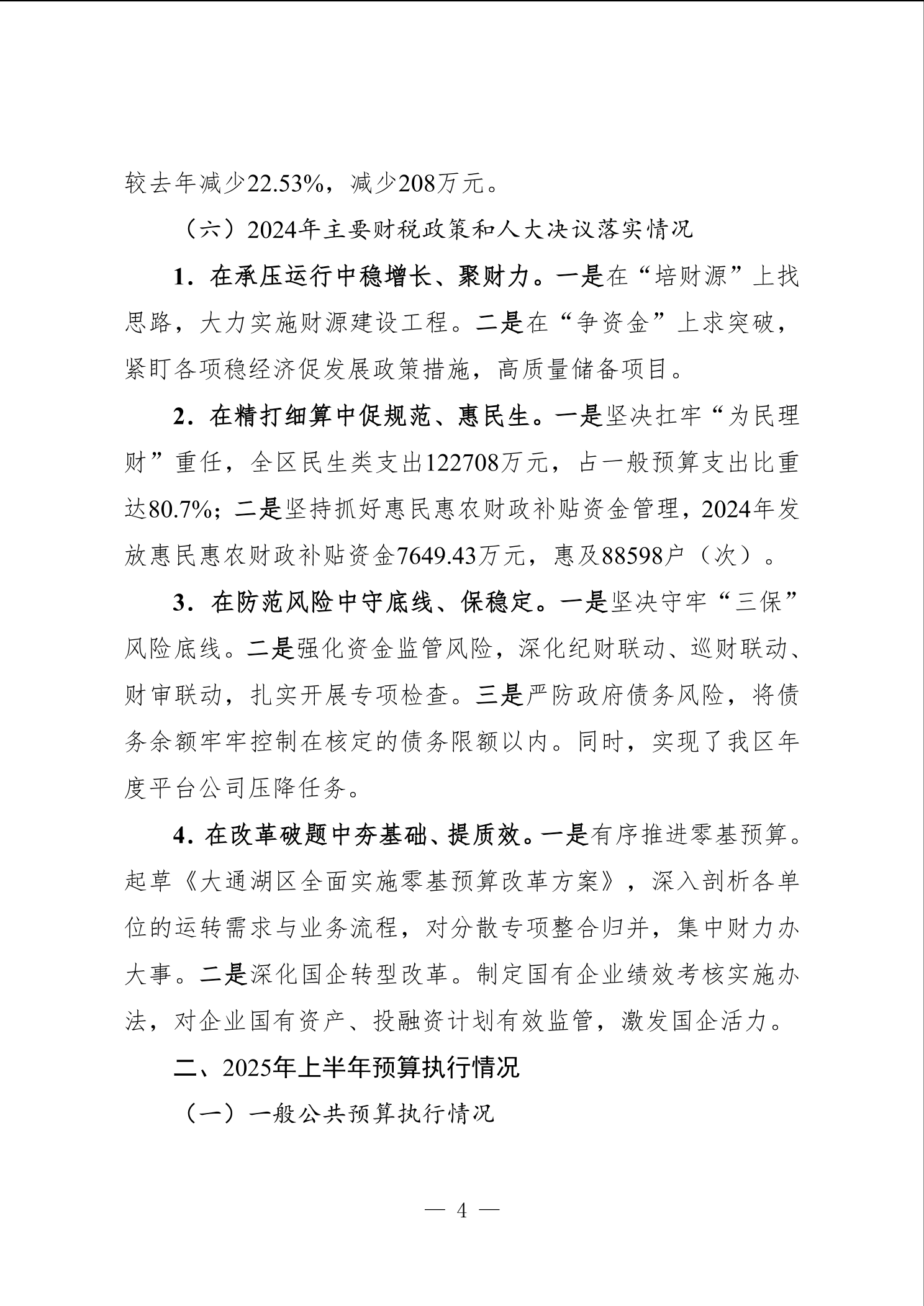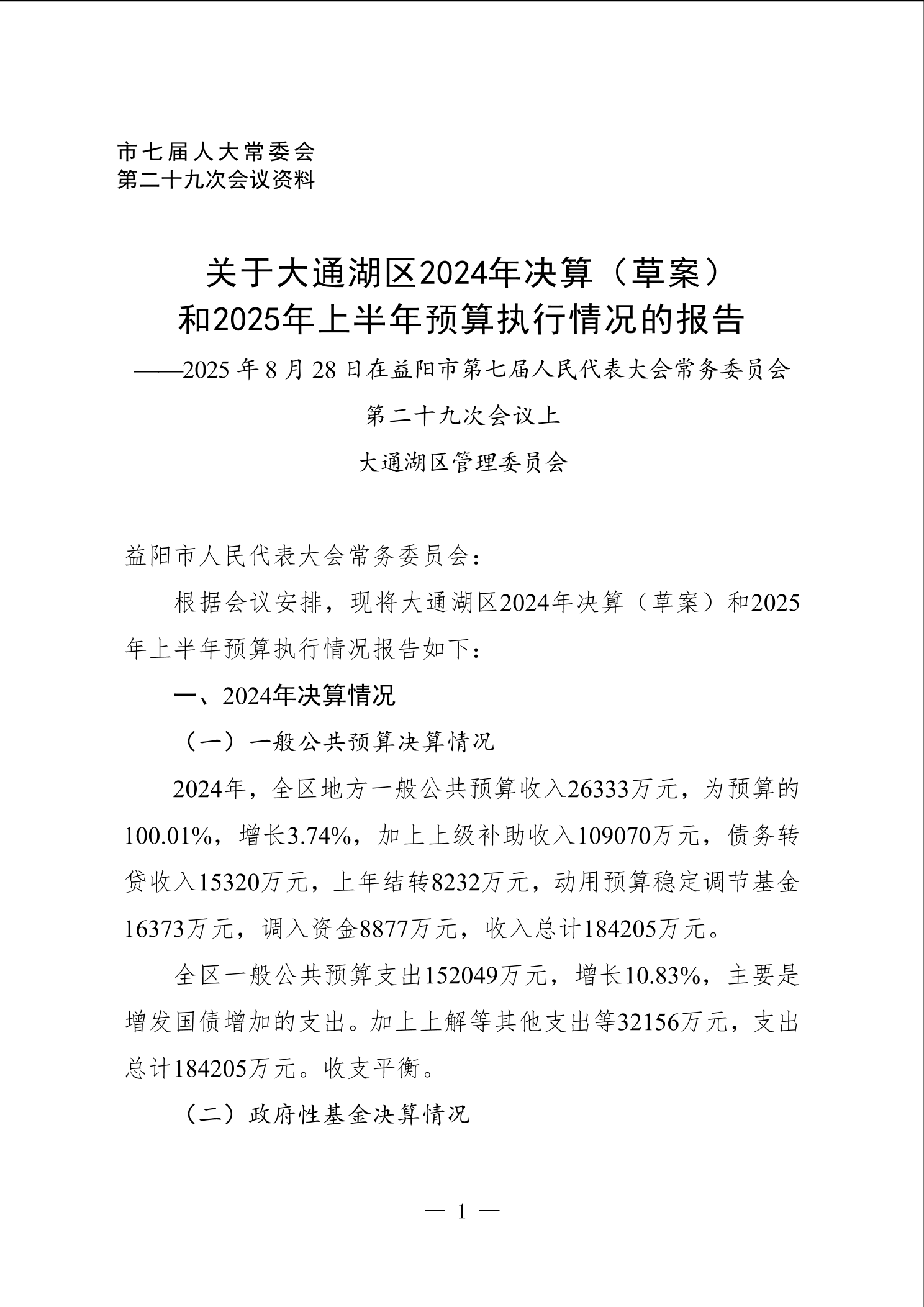 关于大通湖区2024年决算(草案)和2025年上半年预算执行情况的报告