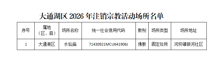 因水仙庙无人管理,根据该场所提出的注销宗教活动场所登记证申请,经我局研究,同意对水仙庙宗教活动场所登记证予以注销,现予公告。